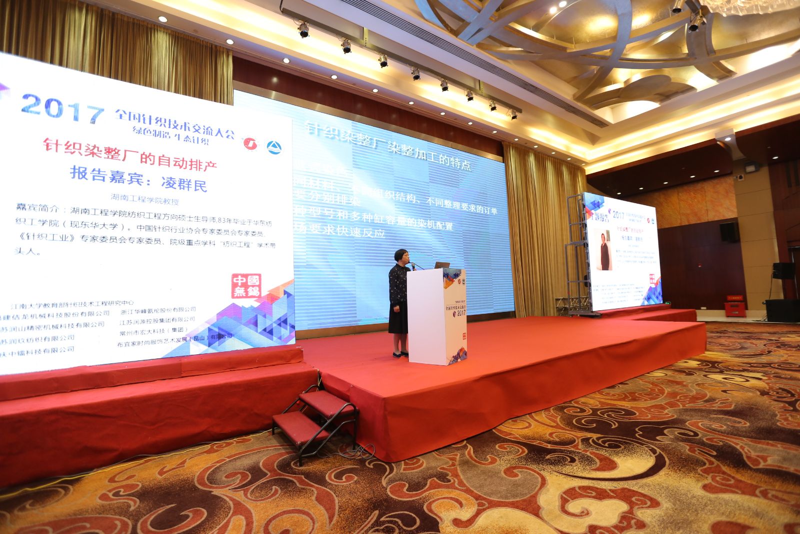 2017年“全国针织技术交流会”于9月21日在江苏无锡来湖滨饭店召开,再次紧扣纺织产业的焦点话题“绿色制造·生态针织”,探讨针织行业绿色制造和生态发展的关键问题。tyc7111cc太阳成凌群民教授作为会议特邀嘉宾作了针织染整厂自动排产系统的主题报告。
