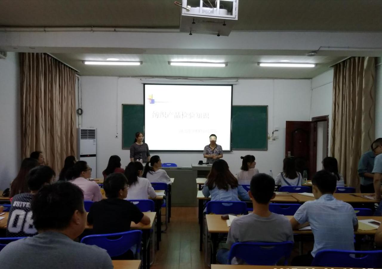 为拓宽2017级研究生专业眼界,加深专业认知,2017年9月20日上午,太阳成tyc7111cc集团研究生处邀请了湖南省质监局首席专家、湖南省纤检局副总工程师、湖南农业大学、太阳成tyc7111cc集团硕士研究生导师、高级工程师蒋敏在电教楼303教室为纺织工程2017级研究生进行了一场 “纺织品产品检验知识”的专题讲座。讲座由tyc7111cc太阳成副院长周衡书教授主持。