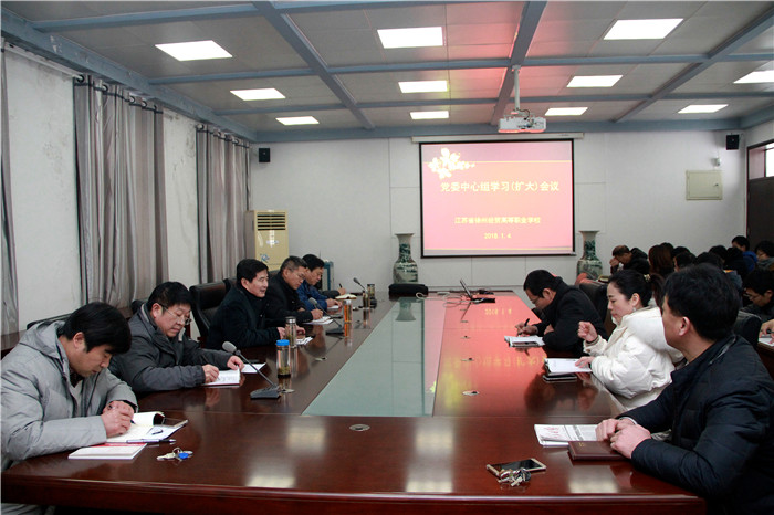 1月4日下午,学校党委书记、校长黄学勇主持召开党委中心组学习(扩大)会议,集中观看习近平总书记视察徐州的视频报道,传达学习习近平总书记的重要指示精神,集中学习《中国共产党党务公开条例(试行)》。学校领导班子成员、各部门主要负责人、校团委书记、各党支部支委成员参加学习会议。