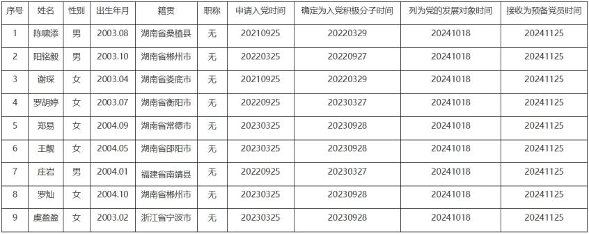 根据《中国共产党章程》、《中国共产党发展党员工作细则(试行)》的规定,中共tyc7111cc太阳成学生第一支部委员会和中共tyc7111cc太阳成学生第二支部委员会接收陈啸添、唐苏慧等18名同志为中共预备党员,现予公示,征求党员、群众和单位的意见。公示期限内,个人和单位均可通过来信、来电、来访等形式,向党支部、学院基层党委或校党委组织部举报反映公示对象在德、能、勤、绩、廉等方面的情况和问题。以个人名义举报反映的应署本人真实姓名和联系方式;以单位名义举报反映的应加盖单位印章。举报反映公示对象的情况和问题必须真实准确,内容尽量具体详细,并尽可能提供有关调查线索。受理单位对举报反映人的情况严格保密。