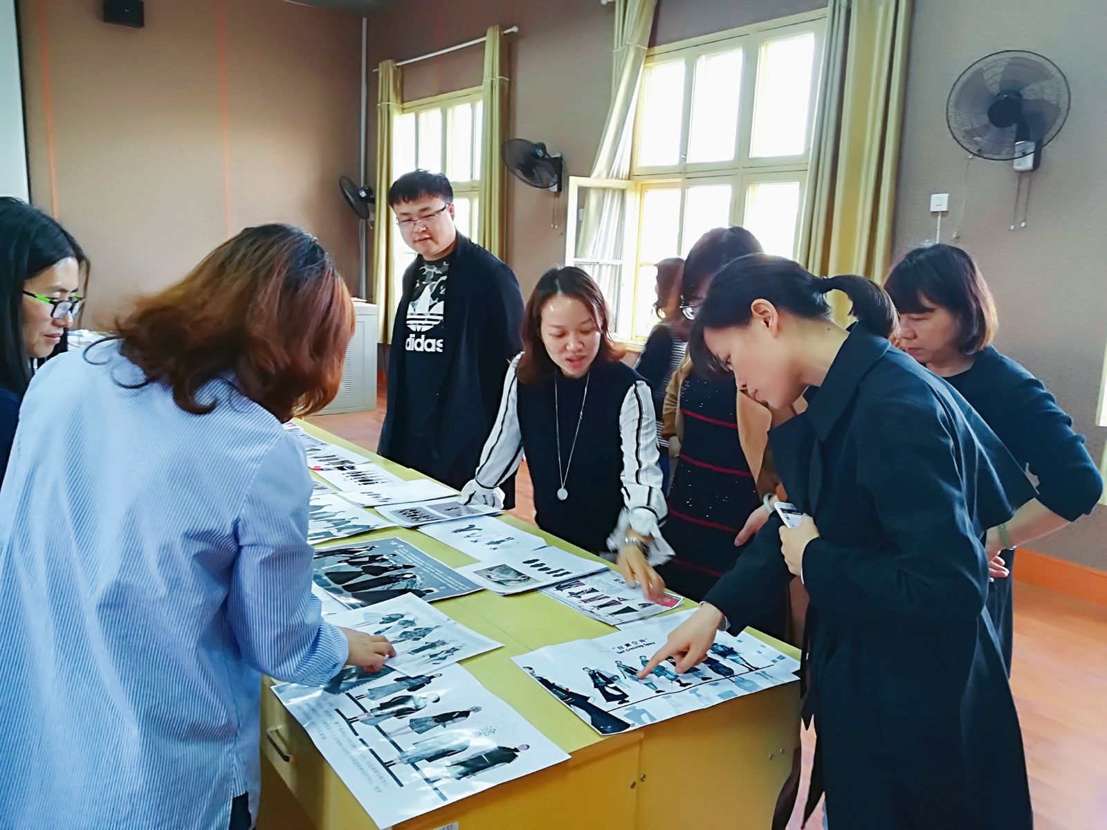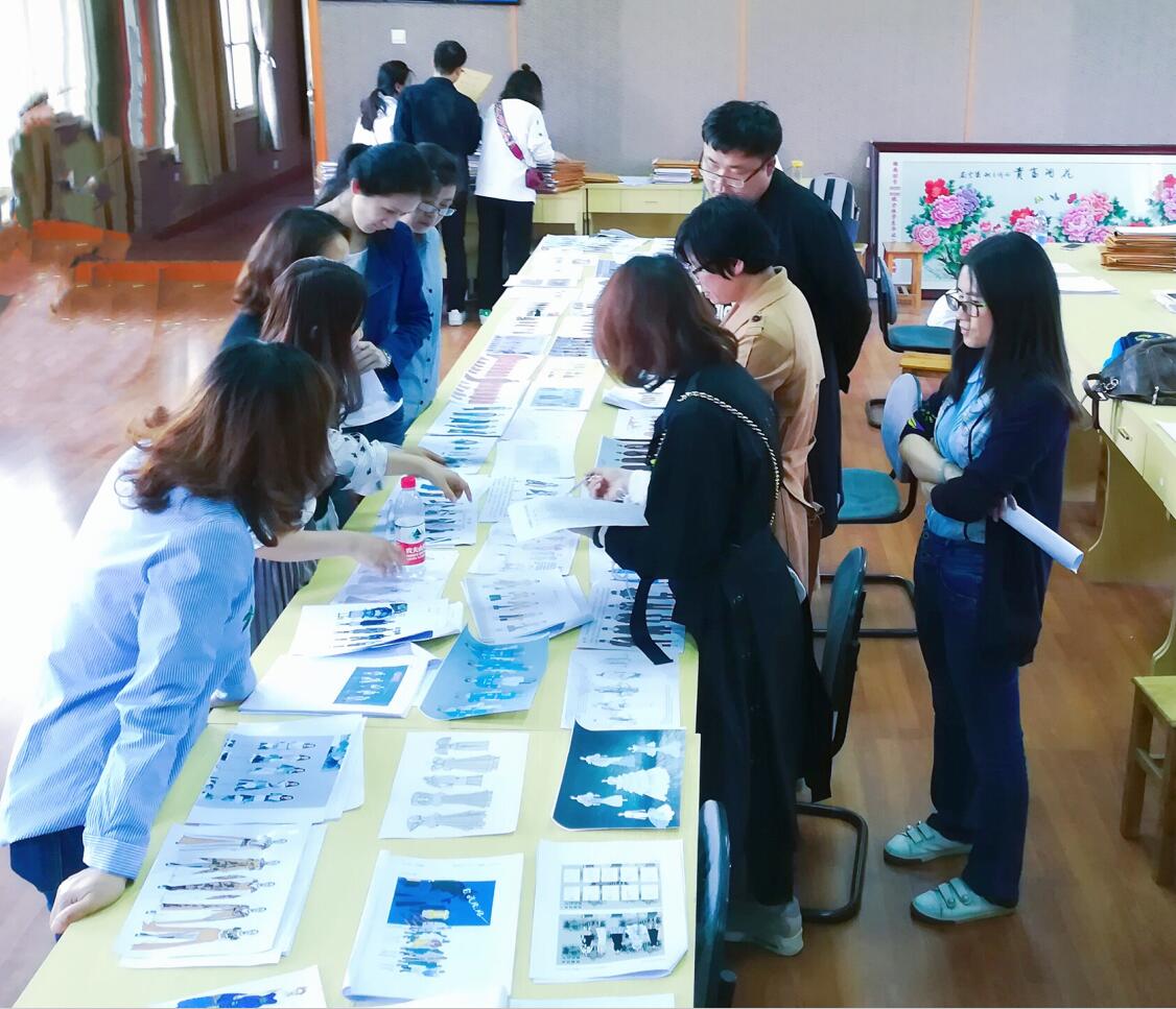 教研室的老师们针对2018届服装设计与工程专业毕业设计稿进行集体评阅