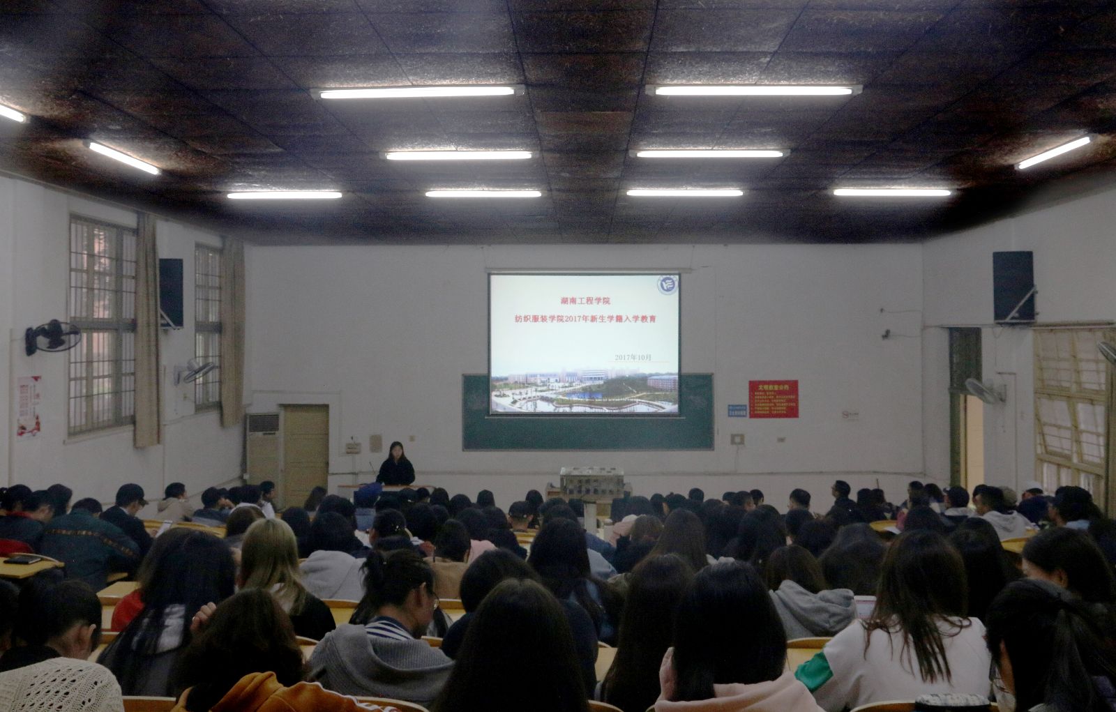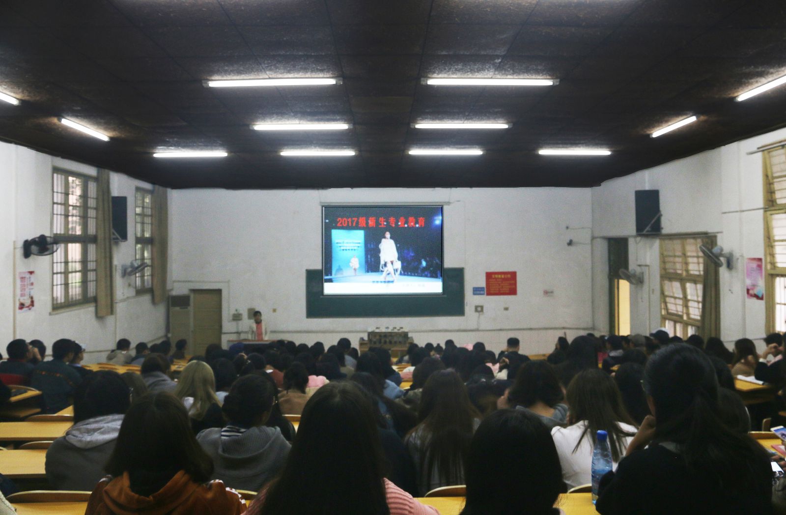 2017年10月17日下午14:30,学院服装与服饰设计专业2017级新生入学专业教育与学期教育通知在电教105举行。出席此次大会的有学院副院长陈晓玲,服装专业教研室全体老师、新生班级班主任以及全体大一新生,入学专业教育由陈晓玲主持。入学专业教育在一段的简洁明晰的专业介绍视频下拉开帷幕,陈晓玲副院长向全体新生表示欢迎,并依次介绍了服装与服饰设计教研室全体专业老师,让同学和老师进行一次近距离的接触。