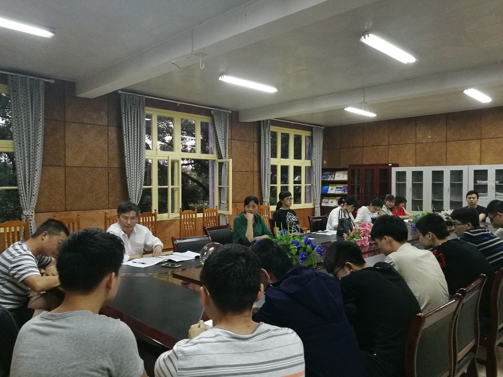 会议中学生自我介绍了自己的情况,以及缺损学分的原因,副书记黄自力会议上强调学分的重要性并提醒大家认真做好准备,并提出在本学期里期末一定要有改变、有计划、有行动——改变学习的态度、方法、计划,将学习落到实处;今日事,今日毕,日有所获。随后江灏作总结讲话,从人生规划和自律意识两方面对学生提出要求,根毕业后的职业目标,坚定自身意志、加强自控能力、学会自我管理,面对诱惑与选择时,能分清主次,切勿舍本逐末;能约束自己,采取正确行动,发展完善自己;并要求学生工作办公室,针对学生学业困难的不同情况,采取一帮一、多帮一的措施;专业老师务必为有需要提供课业辅导,不落下一个有心想学的学生。