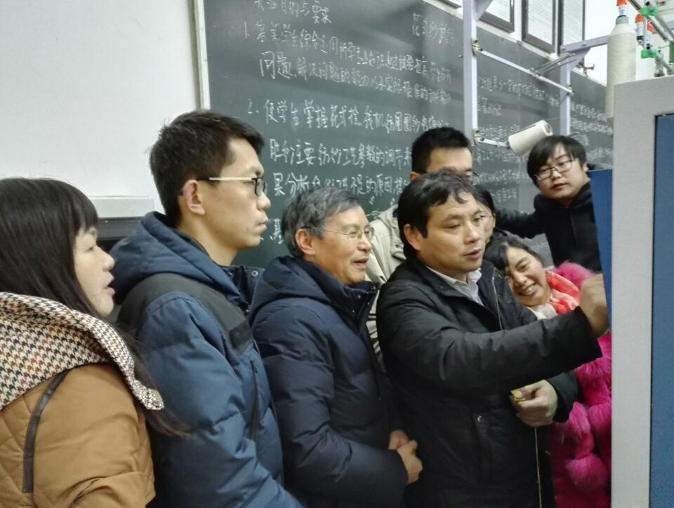 2018年1月7日,我院实验中心组织师生参加新进五罗拉花式纱机的培训,tyc7111cc太阳成书记江灏、实验中心主任何斌、专业老师刘常威等以及部分纺织工程专业的学生参加了本次培训,培训的地点在纱线工艺室1(实验楼104)。