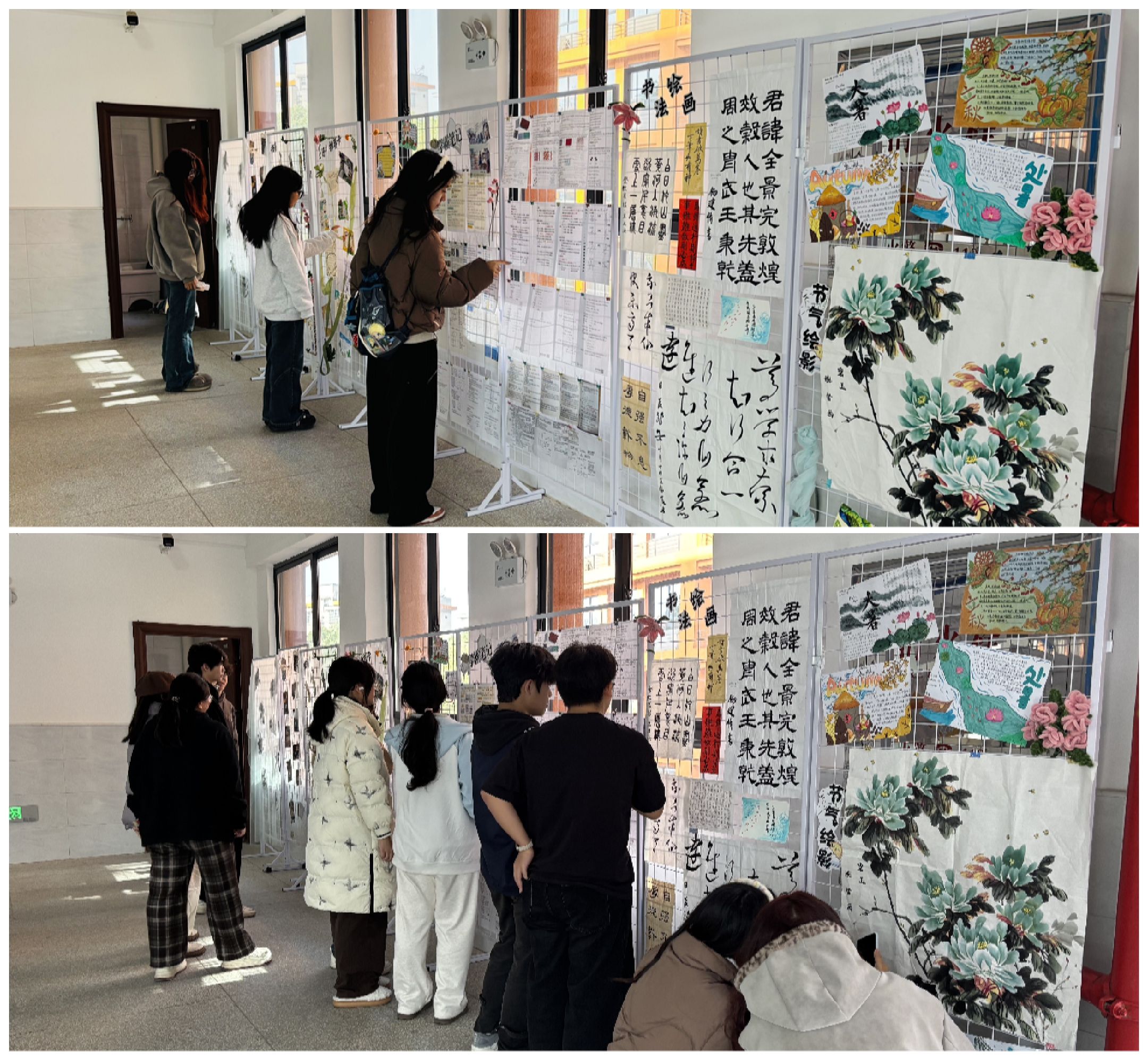 “织光绘影·学海有形”学风作品展则融合专业特色与艺术创作。同学们围绕学风主题,发挥创意,精心制作了书签、好书推荐卡、书法绘画等作品。这些作品于12月17日-12月30日在纺织大楼二楼集中展览,将抽象的学风内涵转化为生动具体的视觉形象,成为学院一道靓丽的文化风景线,引发了师生的广泛共鸣与讨论。