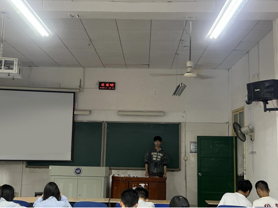 参加分享会的同学们都聚精会神,一边观看视频一边认真做着笔记。讲座结束后,服设2201班苏特杭以自身专业为切入点,通过PPT结合自身经历向同学们分享了他参赛的见解以及自身经验,大家都收益匪浅。