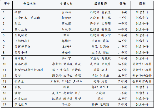 我校学子在此次大赛中喜获一等奖4项、二等奖7项、三等奖6项,参赛获奖作品均来自于《服饰图案设计》、《织物结构与设计》等课程的实践成果。其中2019级服装设计与工程专业管雨涵的作品《碰撞》(指导老师:迟晓丽、贺晨亮)、杨欣欣《以“音”之名 乐山海》(指导老师:迟晓丽、彭小琴)等获得一等奖;纺织专业李新纲等《青春之歌》(指导老师:武世锋、罗凤香)、彭飞《新型防辐射牛仔面料》(指导老师:周蓉、冯浩)等获得二等奖。