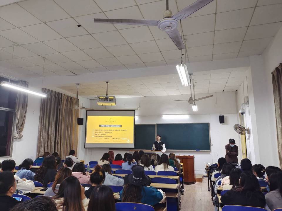 会上,企业主讲人通过ppt介绍公司的培训方案、总部所在地的环境,展示了公司丰富的团建活动,以及公司的经营理念、品牌理念和岗位薪资待遇,然后便是答疑环节,众多学生积极参与并提出心中的疑惑,负责人一一为其答疑解惑并给其送出了精致的礼品。