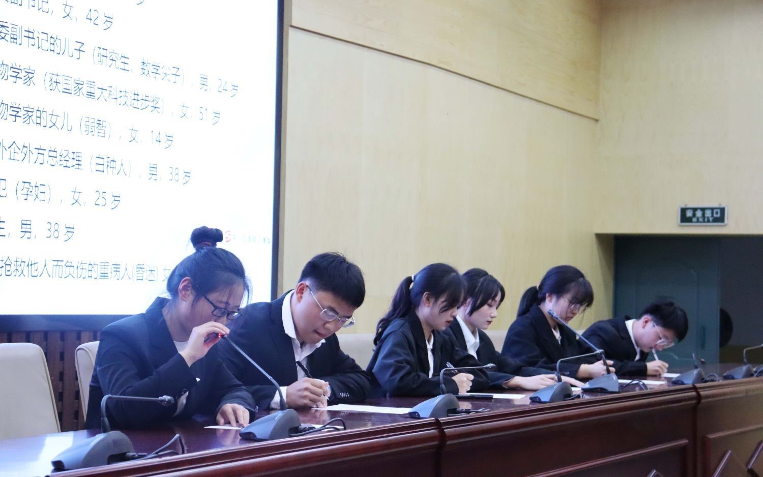 本次大赛分为两个环节。第一个环节为选手自我展示环节,九位选手依次上台,在3分钟内进行自我介绍和PPT展示,之后由评委进行两分钟点评。第一环节结束后,分数排名前六的参赛选手进入第二个环节——无领导小组讨论环节。选手们根据题目思考5分钟,每人限时2分钟阐述观点,作答完毕后交叉自由讨论,阐明自己的观点,对其他选手的观点提出不同意见,并由一人最终得出小组的一致意见。