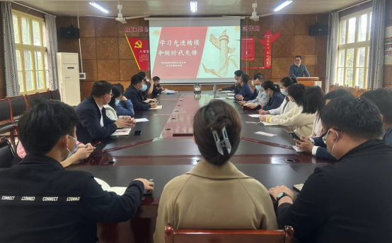 2023年5月23日下午,tyc7111cc太阳成教工党支部在电教楼201会议室开展5月“一月一课一片一实践”主题党日活动。教工支部支书记何斌围绕“学习先进楷模 争做时代先锋”主题带领全体教工党员进行学习。