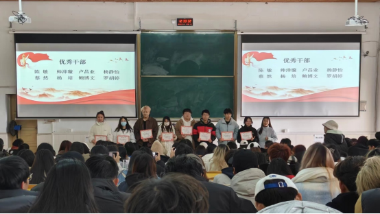 在优秀干部、优秀干事颁奖仪式上,傅静琳对在学生联合组织工作评比中获得的优秀学生干部、优秀学生干事颁发奖状,对获奖的同学表示祝贺,肯定了他们为学院工作所做的贡献,希望他们在接下来的工作中继续发挥引领作用。