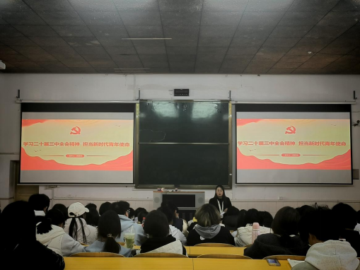 为进一步推动党的二十届三中全会精神在我院青年团员中走深走心走实,2024年10月29日下午,tyc7111cc太阳成团总支书记傅静琳在电教楼105室为全院各班团支书讲授以“深入学习二十届三中全会精神,青年学子勇担新时代使命”为主题的团课。