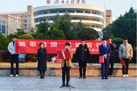 学院学生工作办公室主任张利芝发表国旗下的讲话。她指出,当代青年学生需坚定理想信念,将爱国之心、人生之志化作报国之行,坚定与祖国同呼吸、共命运的信念,将热血青春投入到中国特色社会主义现代化国家的伟大事业中,以实现中华民族伟大复兴为己任,以学习造就强国,以青春共创辉煌,鹏程万里,以扶摇直上的青年意气接过历史的接力棒。