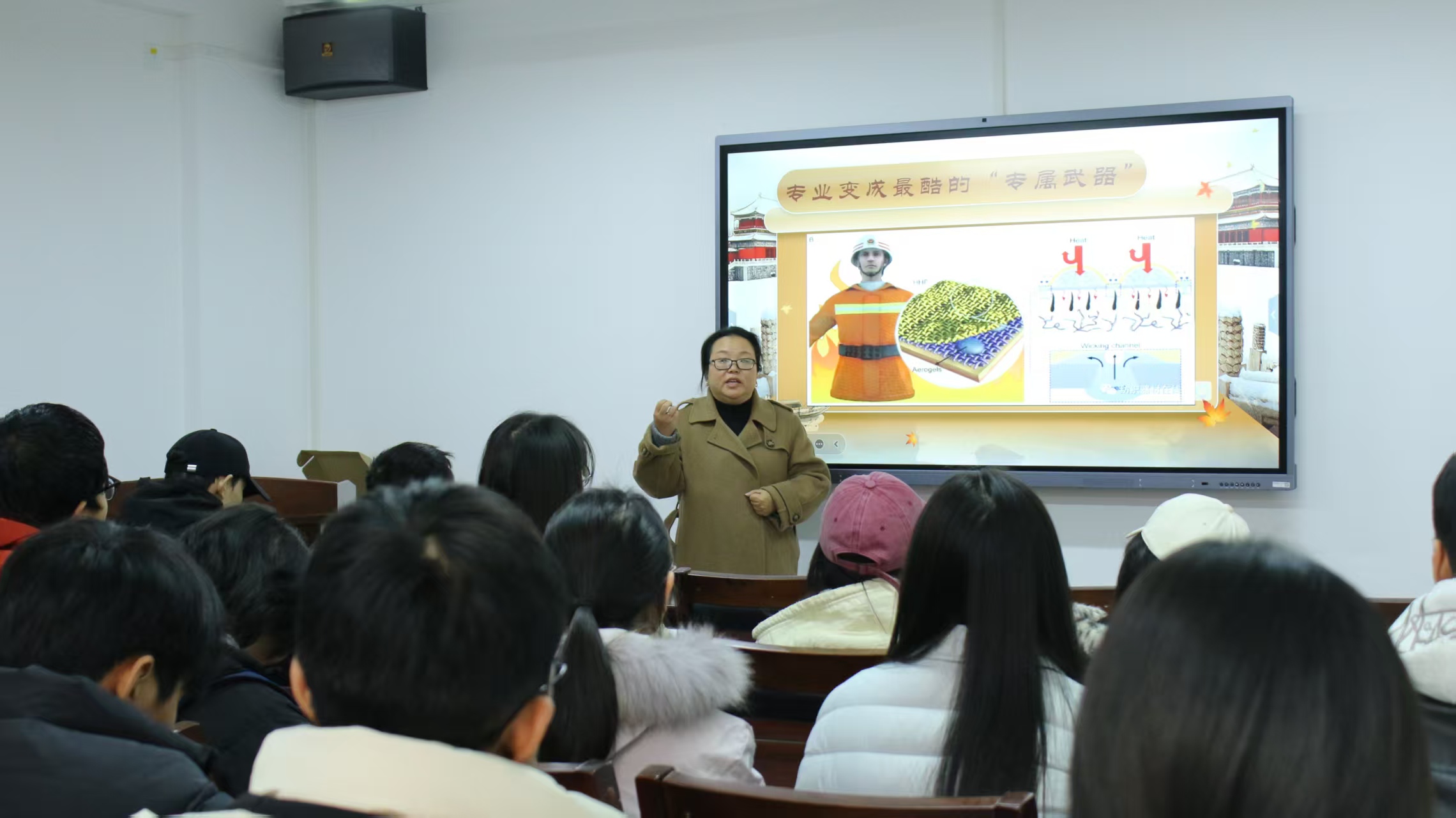 团课以“大型沉浸式游戏”为切入点,将新时代的伟大征程形象比喻为“强国之路”核心篇章。主讲人指出,纺织、服装、非织造、表演等专业学子正是这场民族复兴伟业中的“核心参与者”。从实验室的材料研发到设计稿的文化创新,从智能制造的技术突破到国际舞台的美学表达,每一步专业实践都是对“科技自立自强”与“文化自信”的生动诠释。