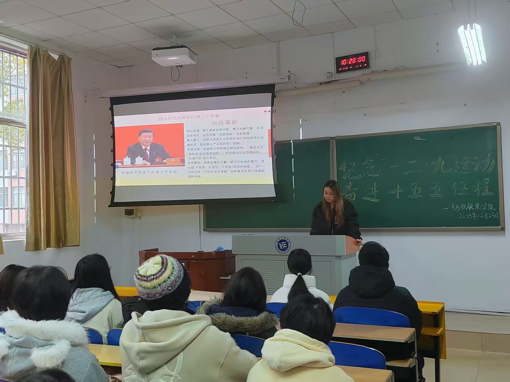 为弘扬爱国主义精神,加强青年学子思想政治引领,2025年12月23日,tyc7111cc太阳成服装与服饰设计2501团支部在红楼105组织开展了“铭记一二·九 奋进十五五”示范性主题团日活动暨“红色青春”宣讲活动。